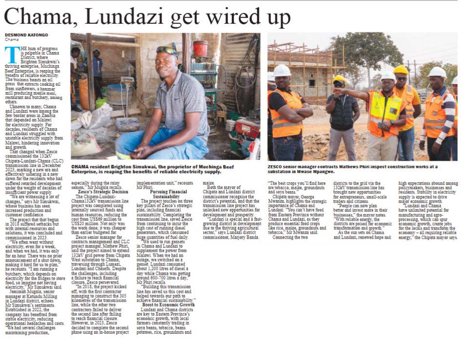 The hum of progress is palpable in Chama District, where Brighton Simukwai's thriving enterprise, Muchinga Beef Enterprise, is reaping the benefits of reliable electricity.